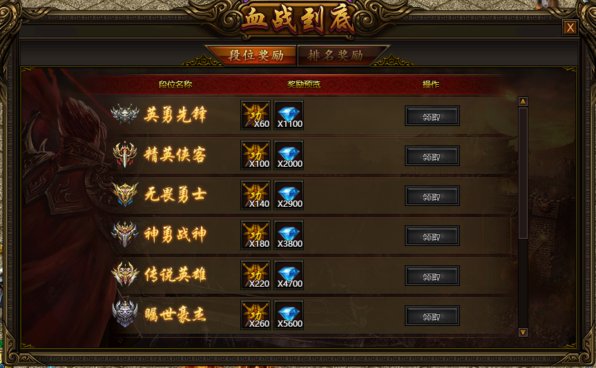c.段位晋级后可以在【奖励预览-段位奖励】界面领取段位晋级奖励,段位奖励每赛季只可领取一次;