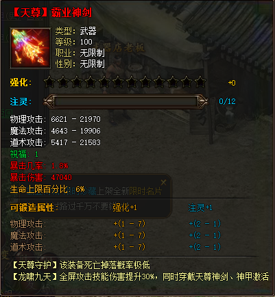 a.霸业套装新增【天尊】等级,可前往【锻造师-霸业套装】处,使用【龙帝】装备和对应的合成道具进行合成;