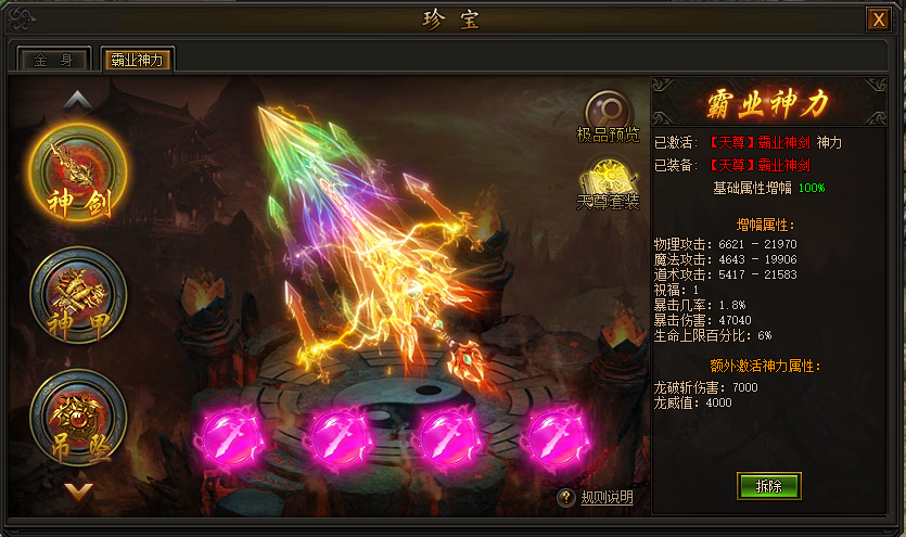 d.【天尊】霸业剑甲和饰品可以放入霸业神力和神石系统中;